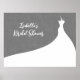 An elegant wedding dress accents this bridal shower poster on an illustrated grey linen background. This is part of the Elegant Bridal Shower Collection in grey linen. If additional coordinating items are needed just contact us at prettyfancyinvites@gmail.com with your request.