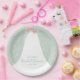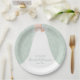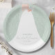 A bride in her wedding dress over a white rose on a eucalyptus green (or any colour) background, makes a beautiful addition to your bridal shower decor. MATCHING items in our store.