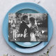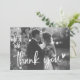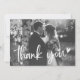 Introducing the Elegant Bride and Groom Wedding Thank You Card, a timeless way to express your heartfelt gratitude. This two-sided design beautifully showcases your favourite wedding moments, with a stunning photo on the front adorned with a delicate white script that says "Thank you." On the reverse, you can personalise it with a second cherished photo and a custom message to your loved ones, making each card a special keepsake. Perfect for capturing the joy and love of your big day, this card is a graceful and personal way to share your appreciation with family and friends.