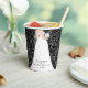 A bride in her wedding dress over a white rose pattern on a black, (or any colour) background, these paper cups make a beautiful addition to your bridal shower decor. MATCHING items in our store.