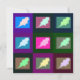 The artwork if of colourful squares of elegant holly leaf artwork.