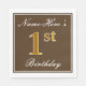 Elegant Brown, Faux Gold 1st Birthday; Custom Name Napkin