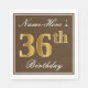 Elegant Brown, Faux Gold 36th Birthday + Name Napkin