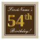 Elegant, Brown, Faux Gold 54th Birthday + Name Poster