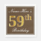 This simple and elegant paper napkin design features a message like "Name-Here’s 59th Birthday" (with the "59th" having a faux gold-like colouring) within a brown-coloured square area featuring a simple border outline. The name is in a white-coloured script-like text, and can be personalised. Napkins like these could perhaps be used at a birthday party for somebody who is celebrating their fifty ninth birthday. [~Z0000139]