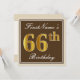 Elegant, Brown, Faux Gold 66th Birthday + Name Invitation