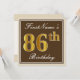 Elegant, Brown, Faux Gold 86th Birthday + Name Invitation