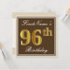 Elegant, Brown, Faux Gold 96th Birthday + Name Invitation