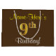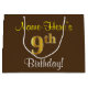 Elegant, Brown, Faux Gold 9th Birthday + Name Large Gift Bag