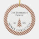 Elegant Brown Gingham Plaid Pine Tree Merry Christmas Ceramic Ornament with photo - Send a special Christmas keepsake ornament with your family name, year and photo with this elegant and modern cottagecore vibes Christmas pine gingham Christmas ornament. With brown chocolate mocha plaid and elegant serif font. All text is editable.