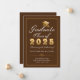 Announce your high school or college graduation in style with this elegant custom announcement card featuring the words Graduate Class of 20XX in white and gold shiny script typography with your name, school, and date to personalise accented by a faux gold graduate cap on a brown background. Designed by Susan Coffey.