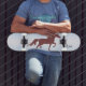 Elegant brown horse silhouette and calligraphy on light sky blue gradient Skateboard. Text can be personalised.