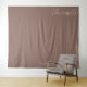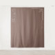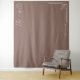 This wedding backdrop features a minimalist design with a solid brown background, creating an elegant and sophisticated atmosphere. The layout includes cursive script text on the left side and geometric line art on the right, offering a modern touch to the composition. With its clean lines and contrasting white elements, this backdrop is perfect for formal occasions, providing a stylish setting that complements any wedding theme.