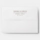 This wedding envelope features a minimalist and elegant design with a clean, centred layout. The muted brown text on a white background creates a classic contrast, while the serif font adds a touch of formality. Perfect for conveying important information clearly, this design emphasizes simplicity and sophistication, making it ideal for formal occasions like weddings. Its straightforward aesthetic ensures that your invitation stands out with professionalism and grace.