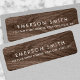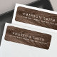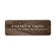 Elegant return address labels with your name and address on a brown wood grain background. Visit Facebook: @businessstationery for more products, news, sales and more.