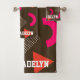 Elegant Brown Orange Geometric Personalized Name Bath Towel Set