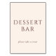 This elegant tabletop sign features a minimalist and sophisticated design, perfect for adding a touch of class to your wedding dessert bar. The clean typography and soft color palette create an inviting atmosphere, encouraging guests to indulge in sweet treats. With its simple yet refined style, this sign effortlessly complements any wedding theme, making it a charming addition to your special day's decor.