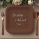 Elegant Brown Script Minimalist Wedding Paper Plate