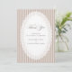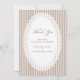 Elegant wedding thank you card featuring mocha brown French stripes and a delicate lace doily oval frame in a timeless mocha palette. A refined, minimalist design perfect for classic, vintage, and neutral wedding stationery suites.