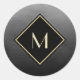Elegant Brushed Black With Simple Gold Monogram Classic Round Sticker