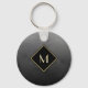 Elegant Brushed Black With Simple Gold Monogram Key Ring