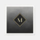 Make a statement with these elegant and stylish black and gold monogram paper napkins. This simple and sophisticated brushed gradient design with a modern diamond shaped frame can be personalised by adding your monogrammed initial. Flat printed image, NOT metallic.
