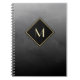 Make a statement with this elegant and stylish black and gold monogram notebook. This simple and sophisticated brushed gradient design with a modern diamond shaped frame can be personalised by adding your monogrammed initial. Flat printed image, NOT metallic.