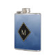 Capture attention with this elegant and stylish blue and black monogram flask. This simple and sophisticated brushed gradient design with a modern diamond shaped frame with a gold border can be personalised by adding your monogrammed initial. Flat printed image, NOT metallic.
