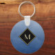 Elegant Brushed Blue With Simple Gold Monogram Key Ring