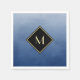 Capture attention with these elegant and stylish blue and black monogram paper napkins. This simple and sophisticated brushed gradient design with a modern diamond shaped frame with a gold border can be personalised by adding your monogrammed initial. Flat printed image, NOT metallic.