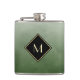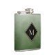 Elegant Brushed Green With Simple Gold Monogram Hip Flask