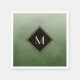 Show off your inner class with these elegant and stylish green and black monogram paper napkins. This simple and sophisticated brushed gradient design with a modern diamond shaped frame with a gold border can be personalised by adding the monogrammed initial of the guest of honour. Flat printed image, NOT metallic.
