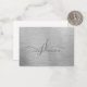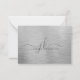 Personalised elegant, minimalist note cards with fancy calligraphy script lettering for a monogram or initials and name on a faux brushed metallic silver background on the front and white on the back for handwriting your personal notes. ASSISTANCE: For help with design modification or personalisation, colour change, resizing, transferring the design to another product or if you would like coordinating items, contact the designer BEFORE ORDERING via the Zazzle Chat MESSAGE tab below or email makeitaboutyoustore@gmail.com.