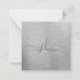 Personalised elegant note cards with fancy calligraphy script lettering for a monogram or initials and name on a faux brushed metallic silver background on the front and white on the back for handwriting your personal notes. ASSISTANCE: For help with design modification or personalisation, colour change, resizing, transferring the design to another product or if you would like coordinating items, contact the designer BEFORE ORDERING via the Zazzle Chat MESSAGE tab below or email makeitaboutyoustore@gmail.com.
