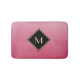 Nothing speaks elegance like this elegant and stylish pink and black monogram bathmat. This simple and sophisticated brushed gradient design with a modern diamond shaped frame with a gold border can be personalised by adding your monogrammed initial. Flat printed image, NOT metallic.