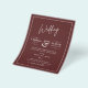 ⭐ NOTE: This is a low-budget flyer paper option. SATIN is the thicker finish here, matt is like paper. Envelopes NOT included. For more traditional invitation paper weights and sizes view the attached collection or transfer the design via the tools on your product page to 'invitation'. ⭐ Deep red burgundy monochrome wedding item with trending typography style and plenty of template fields to create your own custom unique design. For assistance access, Zazzle's FREE LIVE DESIGNER or use the TRANSFER tools on the page.⭐Please view the attached collection and 'additional products' to view the full wedding suite featuring this design or color theme. This may include wedding and bridal shower invitations, rehearsal dinner invites, bridesmaid lunch invites along with save the date, rsvp's, favor tags, stickers and much more. Suitable for spring, summer, autumn, fall, winter weddings, indoors or outdoors, mountain, lake, barn, countryside, castle, garden, backyard. Tons of great designs and options for all budgets.