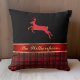 Elegant Buffalo Plaid and Red Ribbon with Reindeer Cushion