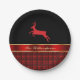 Elegant Buffalo Plaid with Reindeer and Red Ribbon Paper Plate
