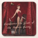 Elegant Bunny Girl on Red Velvet Curtain Square Paper Coaster