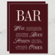Elegant Burgundy Bar Menu Drinks Wedding Tabletop