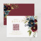 Elegant Burgundy Floral Bloom QR code wedding RSVP Card