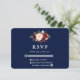 Elegant Burgundy Floral Blue Wedding RSVP Card