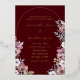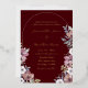 This elegant wedding invitation features a rich burgundy background adorned with original hand-painted floral artwork in soft watercolor tones. Delicate gold-style script typography and a graceful arched frame create a romantic, timeless look. Perfect for formal, romantic, and classic weddings, this invitation is fully customizable with your names, date, and venue details for a truly personal touch.