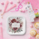 Elegant Burgundy Floral Watercolor Wedding Names Paper Plate