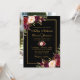 Elegant Watercolor Burgundy Floral Black and Gold Wedding Invitation Card - Photo Back