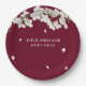 Elegant Burgundy Floral Wedding White Blossom Paper Plate