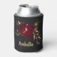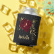 Elegant burgundy flowers with some romantic gold leaves on black background can cooler