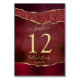 Elegant Burgundy & Gold Agate Wedding Table Number