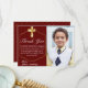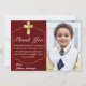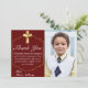 Elegant Burgundy Gold Cross 1st Communion Thank You Card