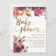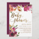 Elegant Burgundy Gold Floral Script Baby Shower Invitation